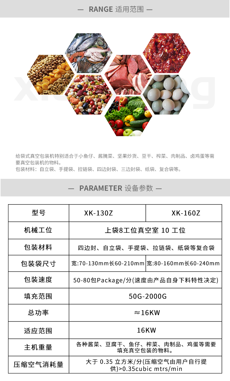 名稱(chēng):XK-130Z(XK-160Z)給袋式全自動(dòng)真空包裝機(jī)