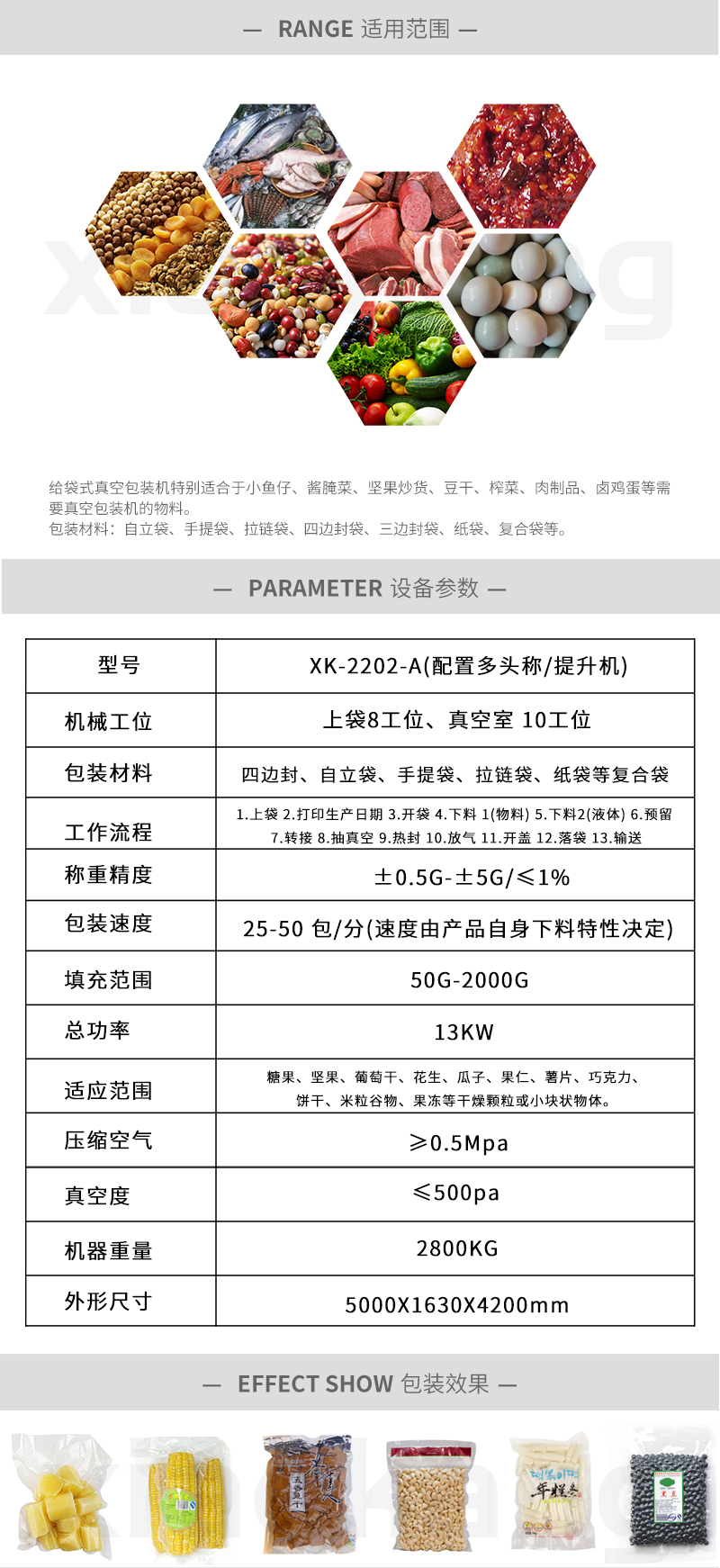 名稱:XK-240sp平鋪式給袋自動真空包裝機